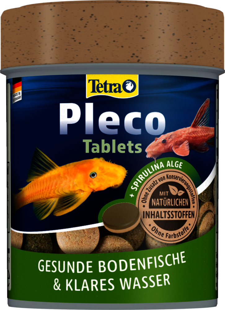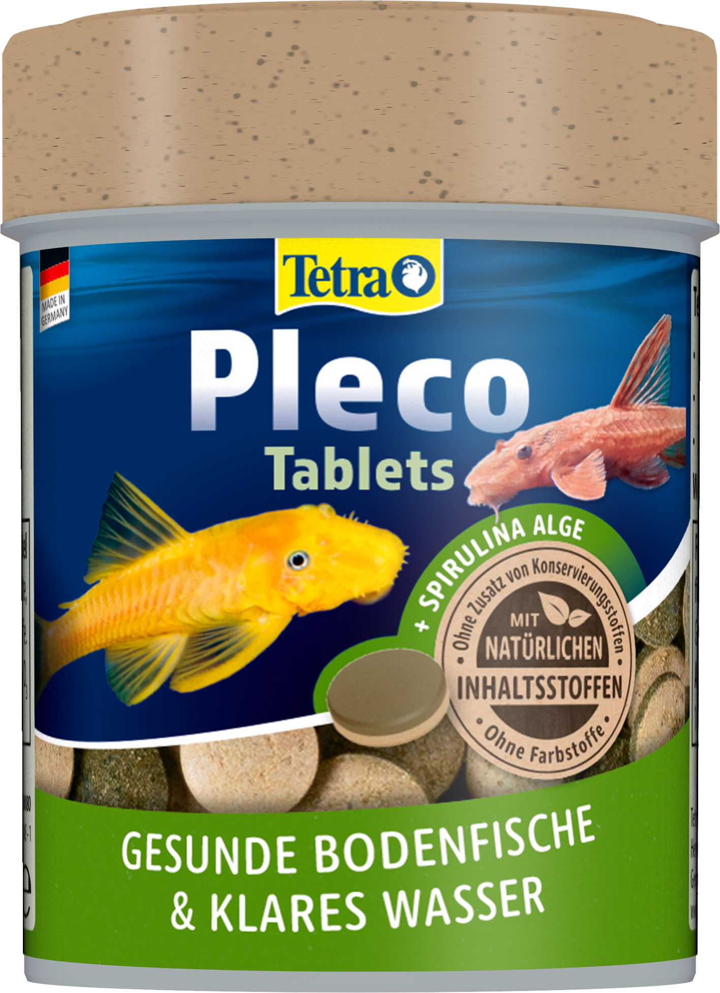 Las pastillas Tetra Pleco ofrecen una nutrición óptima y variada a los peces herbívoros y tímidos que viven en el fondo para favorecer su buena salud y la vivacidad de sus colores.