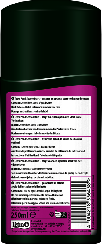Tetra Pond SeasonStart, kış sonrası gölet balıklarını, bitkileri ve mikroorganizmaları etkili bir şekilde harekete geçirir. İlkbaharda süs göletleri genellikle dengesiz bir durumda olabilir. Soğuk kış döneminden sonra balıkların bağışıklık sistemi zayıflar ve bu durum onları hastalıklara karşı daha hassas hale getirir. Ayrıca, gölet suyundaki fazla besin maddeleri ve düşük oksijen seviyesi kötü su kalitesine ve alg patlamalarına neden olabilir.Tetra Pond SeasonStart, balıklarınızı mineraller, iz elementler ve B vitaminleri ile güçlendirir. Aynı zamanda fazla fosfatı bağlayarak gölet bitkilerinin ve mikroorganizmaların sağlıklı büyümesini desteklemek için demir sağlar. Bu özellikleriyle, Tetra Pond SeasonStart, bahçe göletinizi yeni bir sezona hazırlamak için ideal bir su düzenleyicidir.En iyi sonuçları elde etmek için kullanmadan önce iyice çalkalayın ve ürünün detaylı talimatlarını takip edin. Ürünle birlikte gelen dozaj kapağı sayesinde Tetra Pond SeasonStart kolayca uygulanabilir. Her 1.000 litre gölet suyu için dozaj kapağı kullanarak 50 ml ekleyin ve bu işlemi haftalık olarak tekrarlayın. Sıvıyı gölette eşit şekilde dağıtmak için bir çubuk yardımıyla karıştırın. Tetra Pond SeasonStart’ın etkisi, Tetra Pond APK 400 gibi bir su havalandırma sistemi kullanılarak artırılabilir..