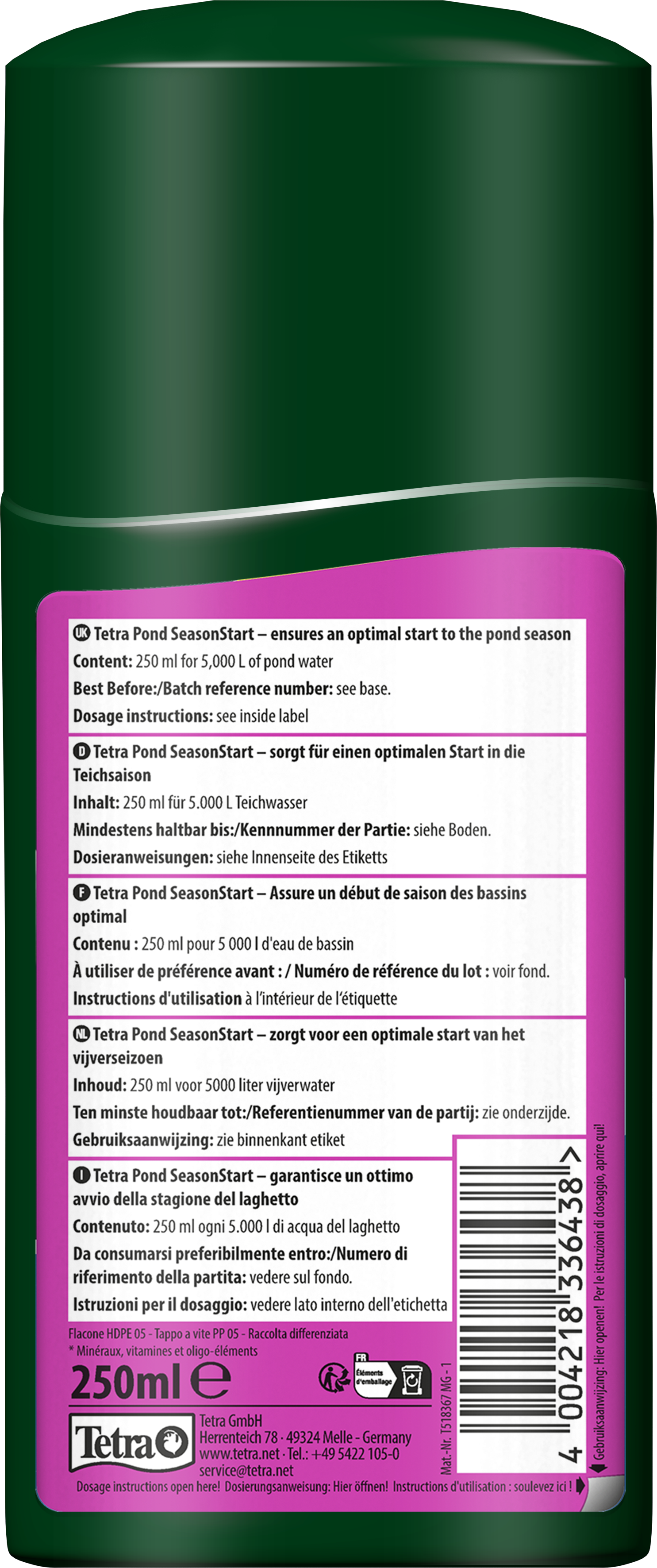 Tetra Pond SeasonStart, kış sonrası gölet balıklarını, bitkileri ve mikroorganizmaları harekete geçiren güçlü bir üründür. Mineraller, iz elementler ve B vitaminleri içeren bu ürün, bahçe göletinizi yeni bir sezona hazırlamak için ideal bir su düzenleyicidir.