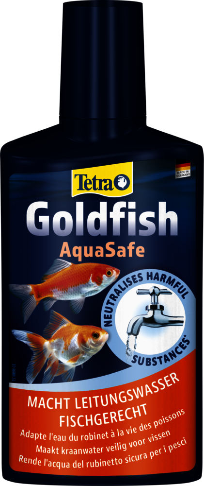 Tetra Goldfish AquaSafe wurde speziell entwickelt, um Leitungswasser für Goldfische sicher zu machen. Die optimierte Vitaminmischung hilft, Stress bei Wasserwechseln, beim Einrichten des Aquariums oder beim Transport zu reduzieren und unterstützt die langfristige Gesundheit und Vitalität Ihrer Goldfische. Ein natürliches Pflanzenextrakt schützt die empfindlichen Kiemen und Schleimhäute, während spezielle Pflegekolloide gezielten Schutz für die Flossen bieten, damit sie kräftig und intakt bleiben.