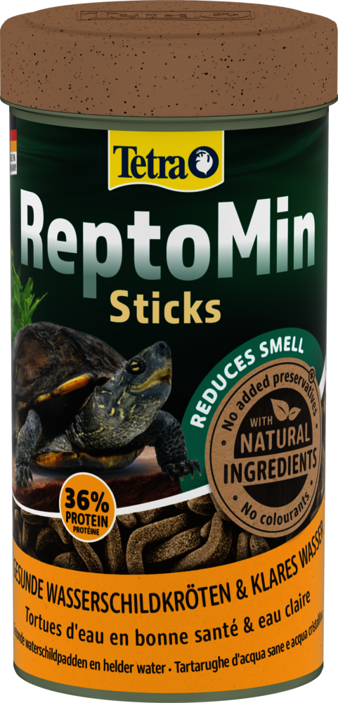 Tetra ReptoMin Sticks is a balanced and nutritious complete food for all water turtles. The food contains 36% high-quality protein which promotes healthy growth. This is supplemented by the optimal calcium-phosphorus ratio to keep shells healthy and bones strong. The specially-developed food formula of Tetra ReptoMin also reduces unpleasant tank odours and is made with natural ingredients. The Tetra ReptoMin food sticks are specially adapted to the requirements and eating habits of adult turtles, making it easier to feed them. The unique recipe, which is with high-quality natural ingredients, without colourants and added preservatives, promotes healthy growth and a strong immune system.