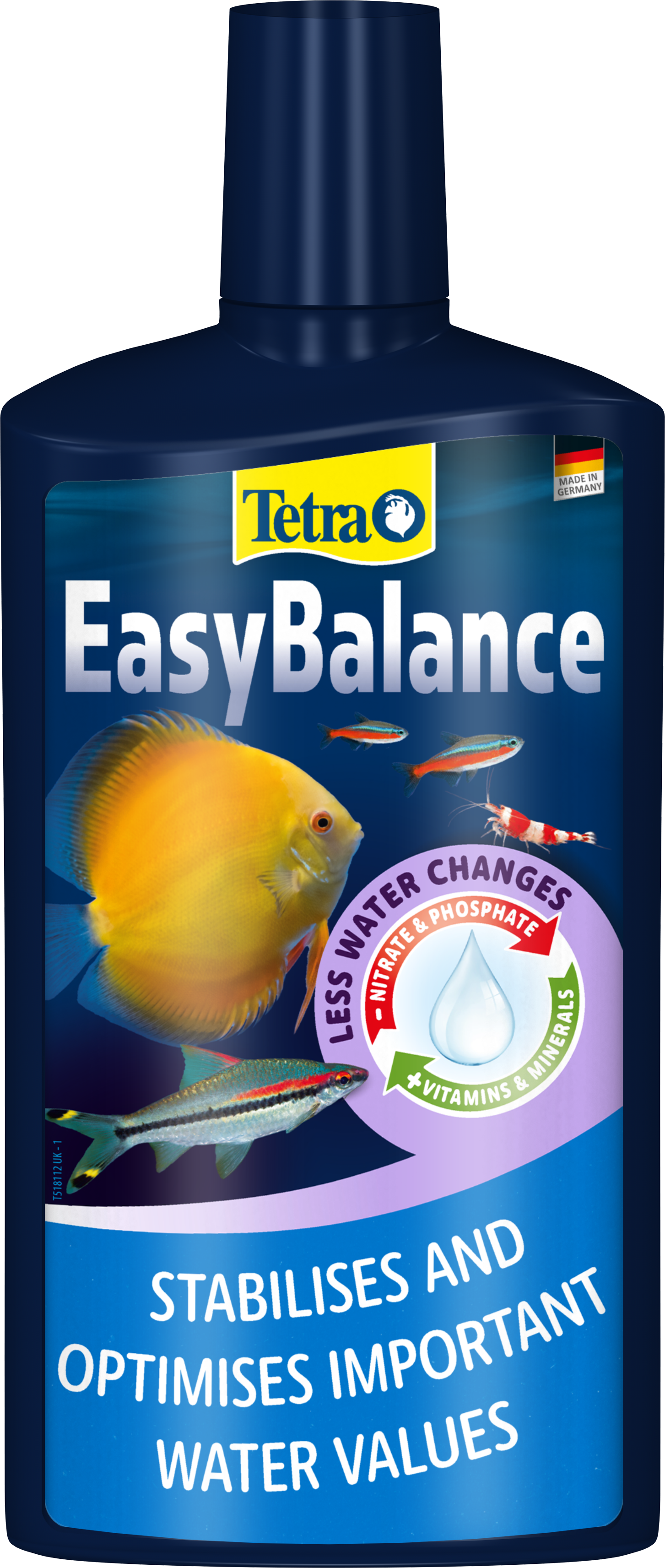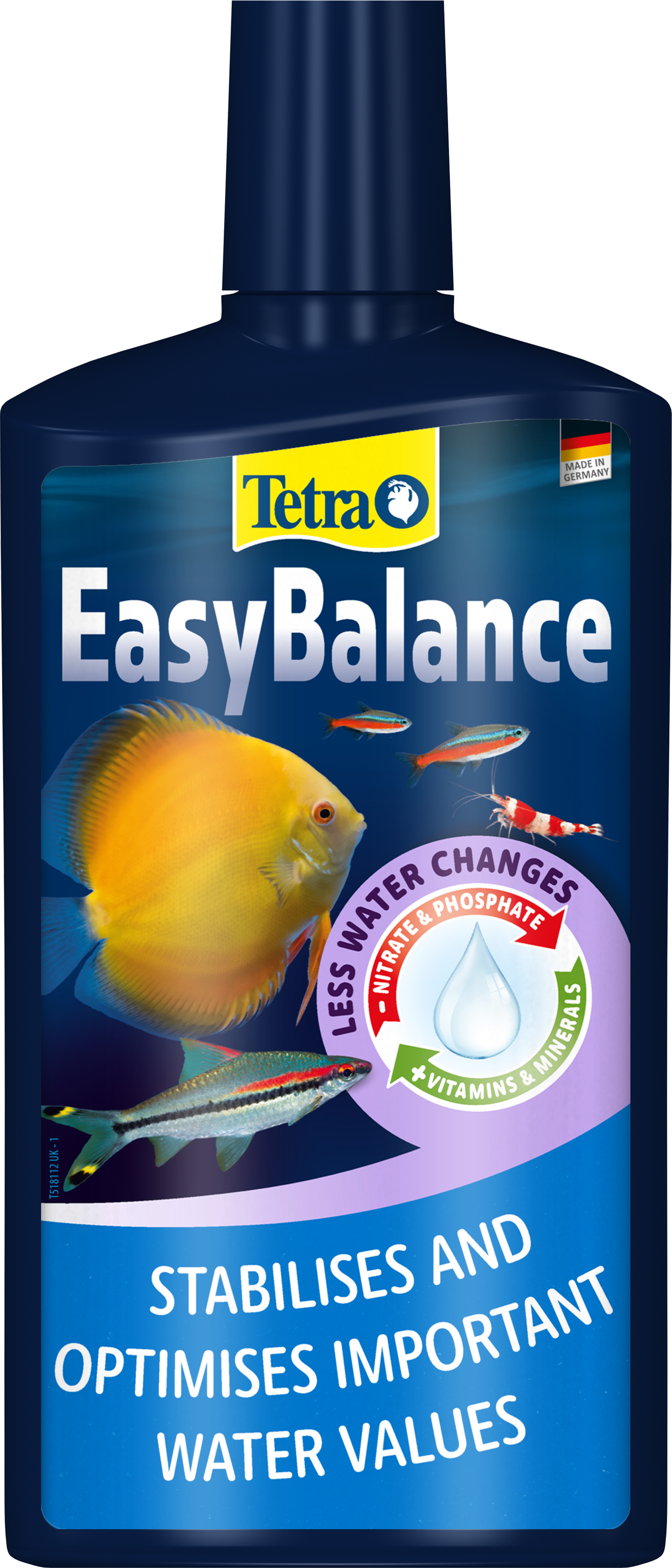 Tetra EasyBalance is a unique water care liquid that keeps your aquarium in balance with minimal effort. It stabilises the pH and carbonate hardness (KH) while reducing nitrate and phosphate in a biological way to extend cleaning intervals. At the same time, the product enriches the aquarium water with essential vitamins, trace elements and minerals that fish and plants need for a healthy life.