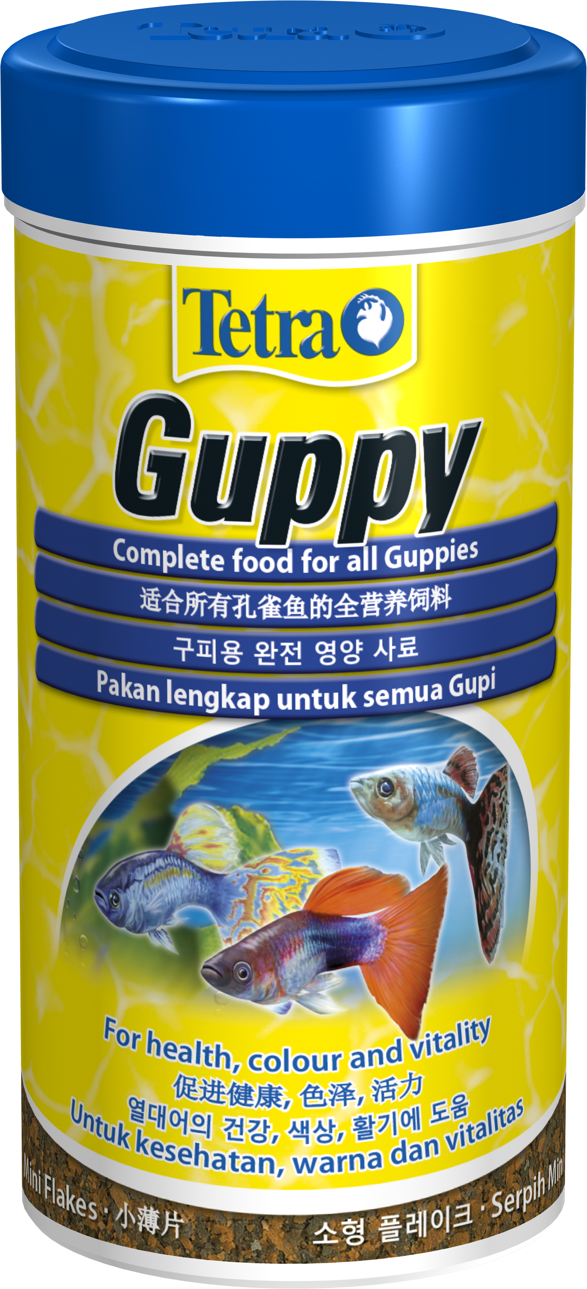 Highly nutritious complete food in the form of mini flakes for daily feeding of guppies and other live-bearing toothcarps. Supports the health, colouration and vitality of fish.