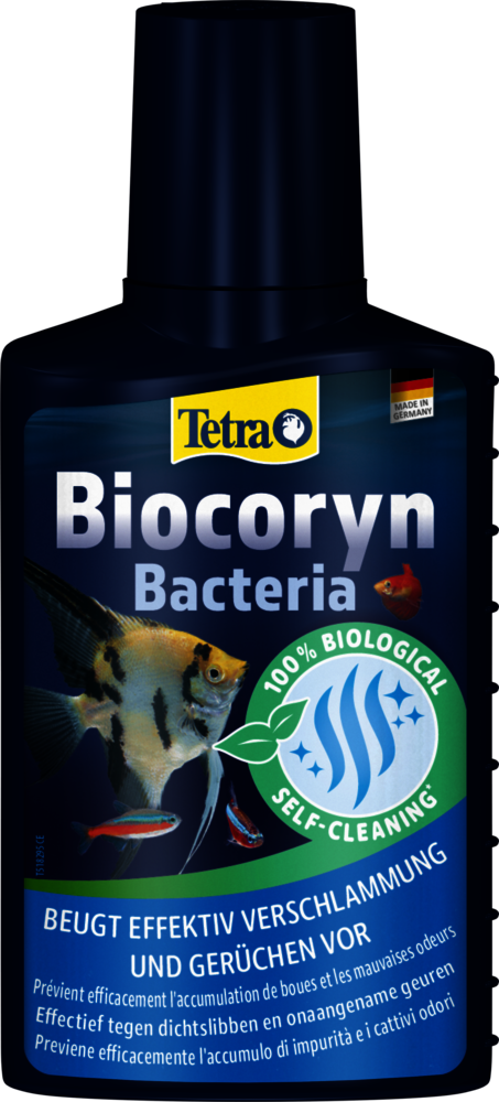 Tetra Biocoryn reduce los olores desagradables, la acumulación de lodo y la formación de contaminantes. Su fórmula líquida contiene bacterias limpiadoras vivas altamente eficaces que aceleran la descomposición de materia orgánica, como restos de comida, residuos vegetales y residuos de los peces. Para todos los acuarios de agua dulce y salada.