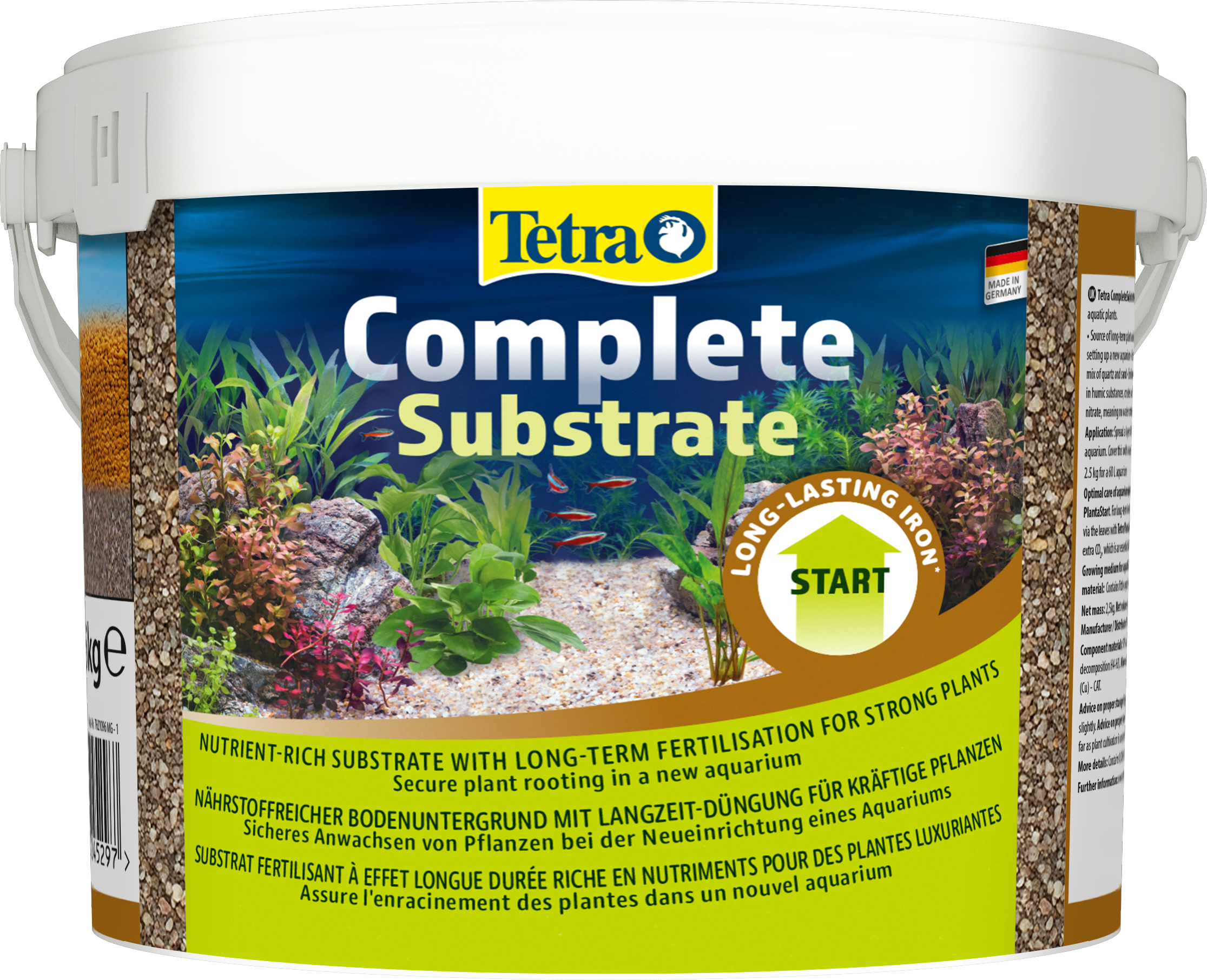 Tetra CompleteSubstrate ofrece un suministro duradero de hierro disponible para las plantas desde el principio, proporcionando la base ideal para un crecimiento frondoso y saludable de las plantas acuáticas. Especialmente formulado para su uso al instalar un acuario nuevo, ofrece una mezcla equilibrada de cuarzo y arena para promover un desarrollo rápido y seguro de las raíces, asegurando que las plantas se establezcan rápidamente y permanezcan firmemente ancladas. Enriquecido con micronutrientes y minerales esenciales, Tetra CompleteSubstrate proporciona a sus plantas todo lo que necesitan para desarrollar raíces fuertes y resistentes y mantener un follaje verde vibrante. La inclusión de turba negra natural, rica en sustancias húmicas, crea un entorno de sustrato equilibrado y biológicamente activo, ayudando a estabilizar las condiciones del acuario desde el principio. Sin fosfatos ni nitratos, Tetra CompleteSubstrate garantiza que no se liberen nutrientes no deseados en el agua, lo que lo hace seguro para los peces y evita los problemas de algas.Para aplicar, simplemente extienda una capa de 2 a 4 cm de Tetra CompleteSubstrate en el fondo de su acuario. Esta debe cubrirse con aproximadamente 4 cm de Tetra ActiveSubstrate o gravilla de acuario estándar para completar el lecho de plantación. Para un cuidado óptimo, recomendamos apoyar el crecimiento de las raíces con Tetra PlantaStart durante la preparación, fertilizar las hojas regularmente con Tetra PlantaMin y suministrar CO2 adicional en acuarios ricos en plantas usando productos como el Tetra CO2 Optimat Set o Tetra CO2 Plus. Con Tetra CompleteSubstrate, usted da a sus plantas acuáticas el mejor comienzo posible y sienta las bases para un acuario próspero y bellamente plantado.