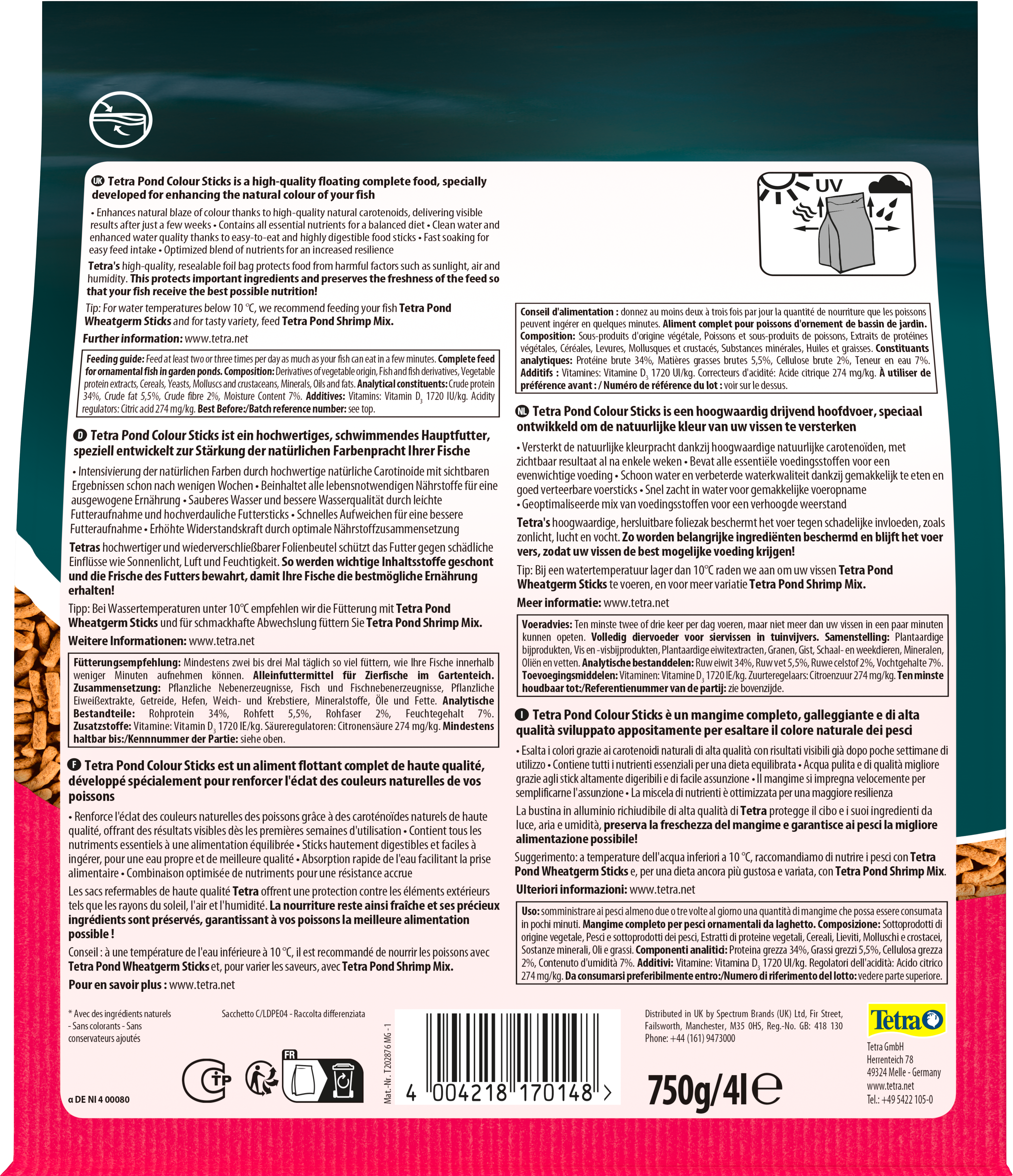 Tetra Pond Colour Sticks realza los colores naturales y vivos de todos los peces de estanque. Con carotenoides naturales de alta calidad, estas barritas realzan el brillo del color tras unas pocas semanas de uso.