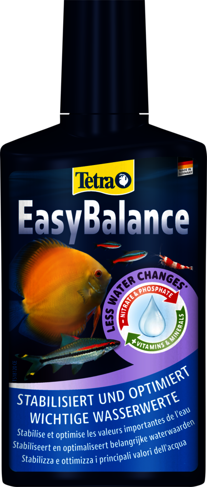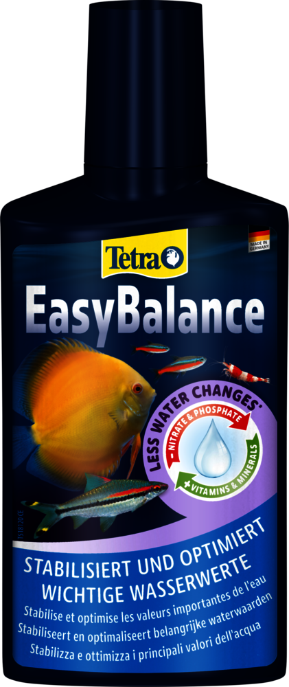 De nombreux aquariophiles trouvent que les changements d'eau fréquents prennent beaucoup de temps. Tetra EasyBalance a été créé pour rendre l'aquariophilie à la fois plus pratique et plus respectueuse de l'environnement. En stabilisant le KH et le pH et en réduisant les substances qui sont un facteur de stress pour les poissons et les plantes, Tetra EasyBalance favorise un équilibre naturel et constitue un « filet de sécurité » sur lequel les aquariophiles peuvent compter, en particulier pendant les périodes chargées ou pendant les vacances.