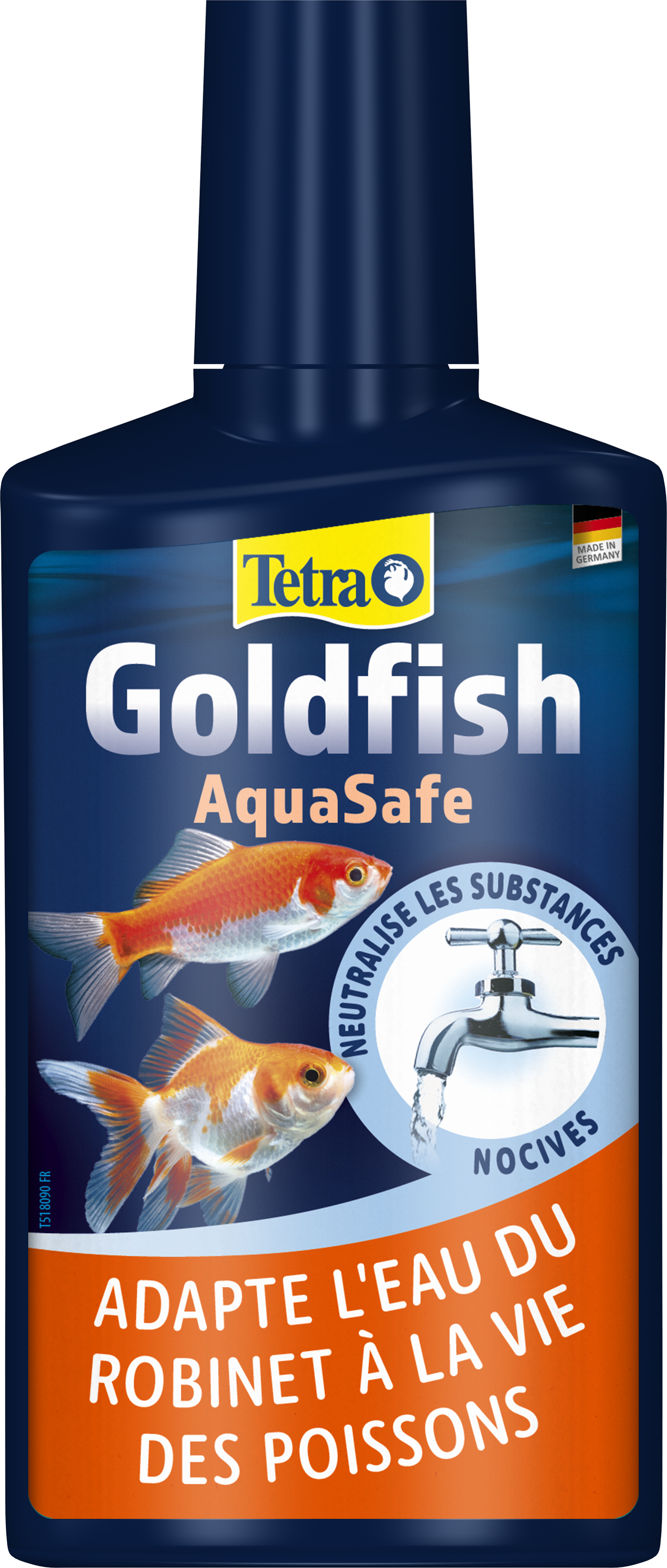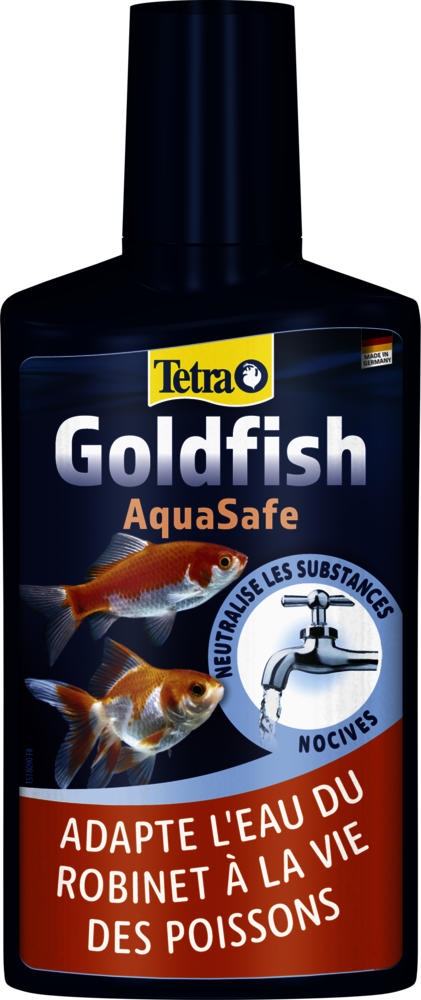 La solution Tetra Goldfish AquaSafe a été spécialement conçue pour transformer l'eau du robinet en un environnement adapté aux poissons rouges. Elle contient un mélange de vitamines optimisé qui contribue à réduire le stress lors des changements d'eau, de l'installation de l'aquarium ou du transport, favorisant ainsi la santé et la vitalité à long terme de vos poissons rouges. Un extrait de plante naturel protège les branchies et les muqueuses délicates, tandis que des colloïdes spéciaux offrent une protection ciblée pour préserver l'intégrité et la solidité des nageoires.