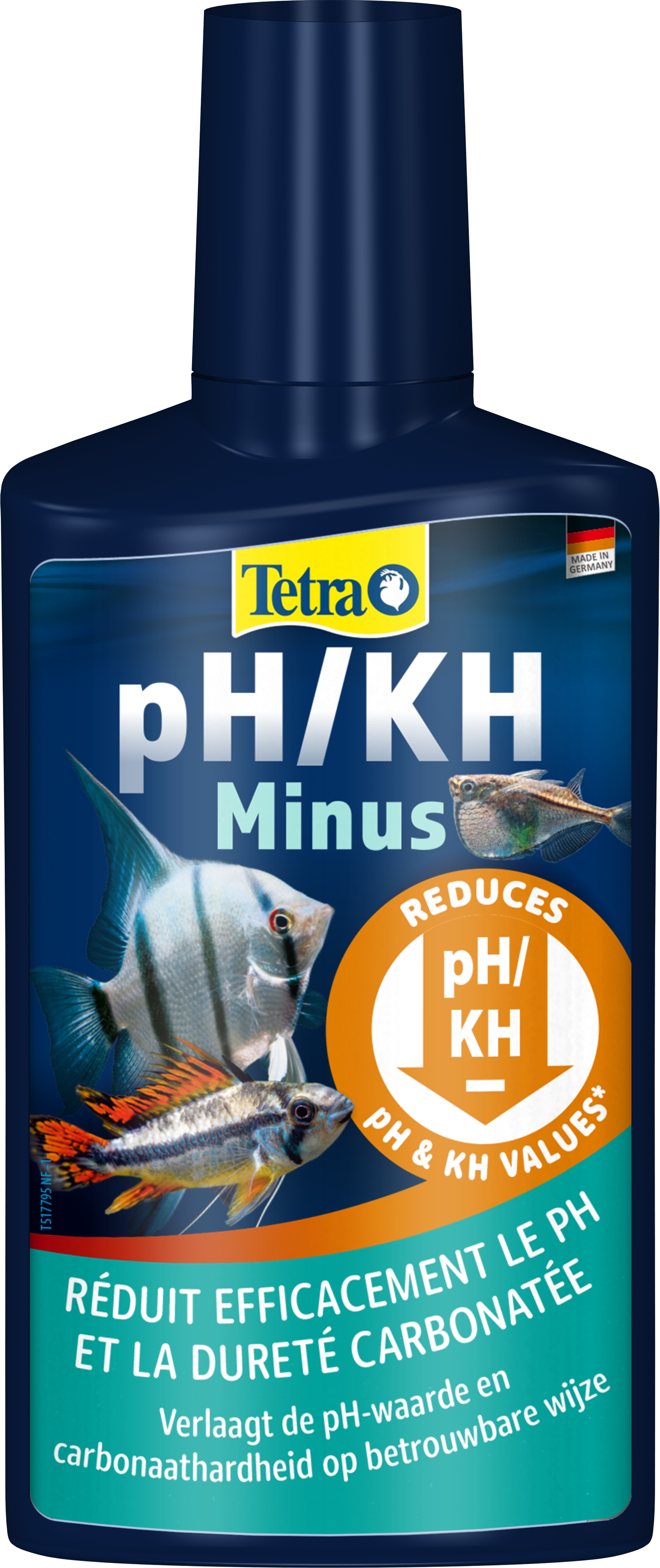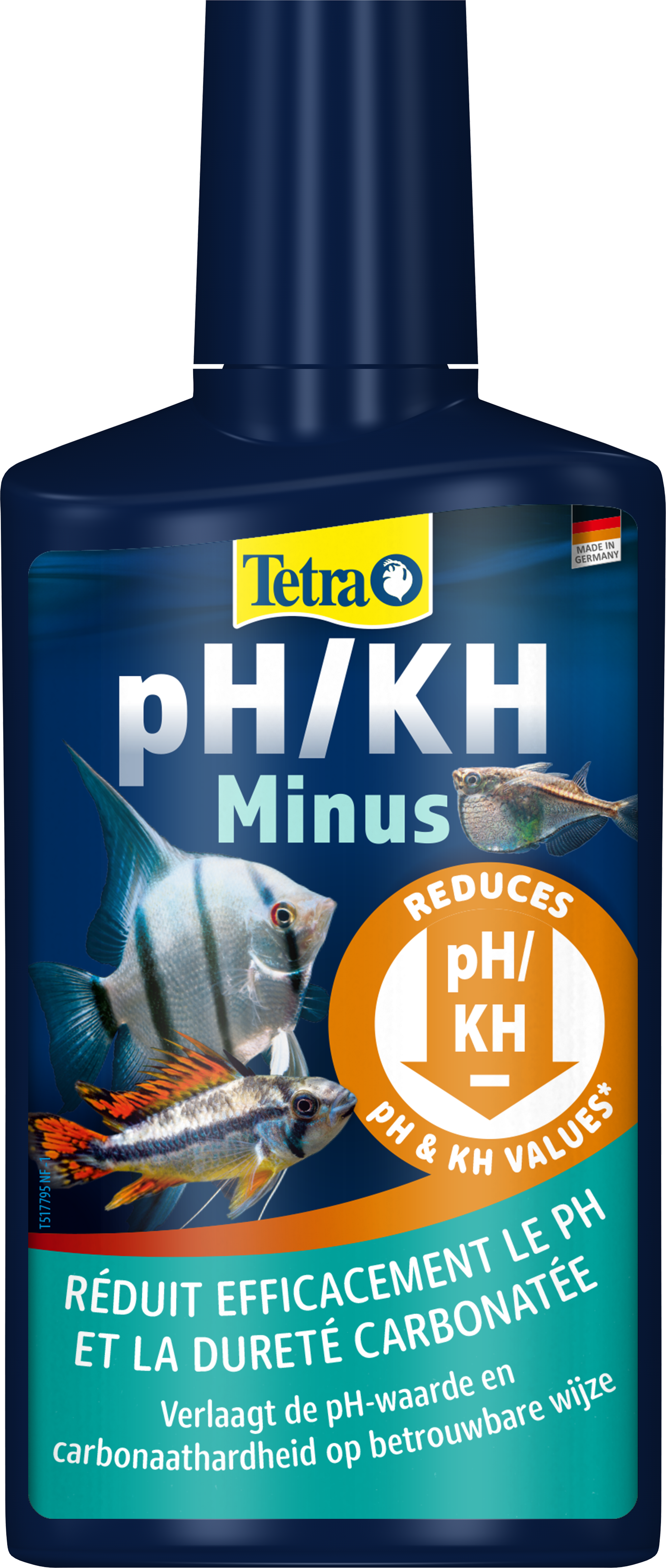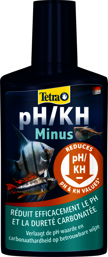Tetra pH/KH Minus est une solution fiable pour réduire en toute sécurité la dureté carbonatée (KH) dans votre aquarium. Lorsque le KH diminue, la valeur du pH diminue aussi automatiquement, créant ainsi des paramètres de l'eau optimaux pour certaines espèces de poissons.