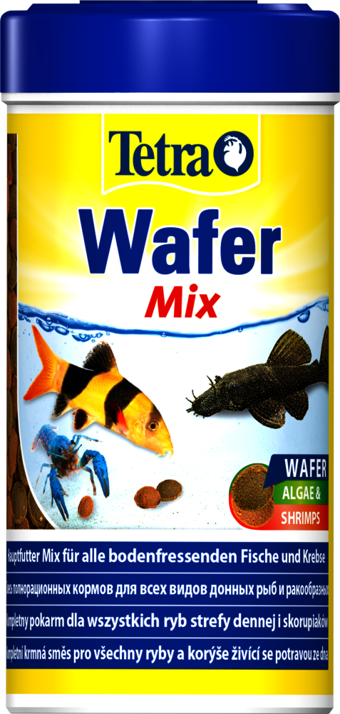 A Tetra Wafer Mix kiegyensúlyozott tápértékű étrendet kínál minden, talajon táplálkozó hal és rák számára. A benne lévő garnélarák és a spirulina alga a lehető legkiválóbb táplálékot biztosítja.