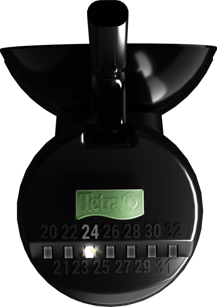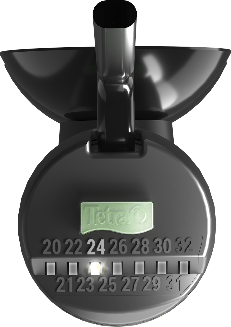 U kunt de gewenste temperatuur op uw Tetra HT Heater Electronic instellen door eenvoudig op een knop te drukken. Druk hiervoor op de groene Tetra-knop aan de bovenkant van uw Tetra HT Heater Electronic. De lampjes laten u zien welke temperatuur u zojuist hebt ingesteld.