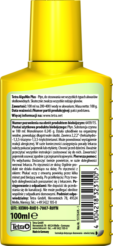 Tetra AlguMin Plus Środki glonobójcze należy stosować z zachowaniem środków ostrożności. Przed każdym użyciem należy przeczytać etykietę i informacje dotyczące produktu.