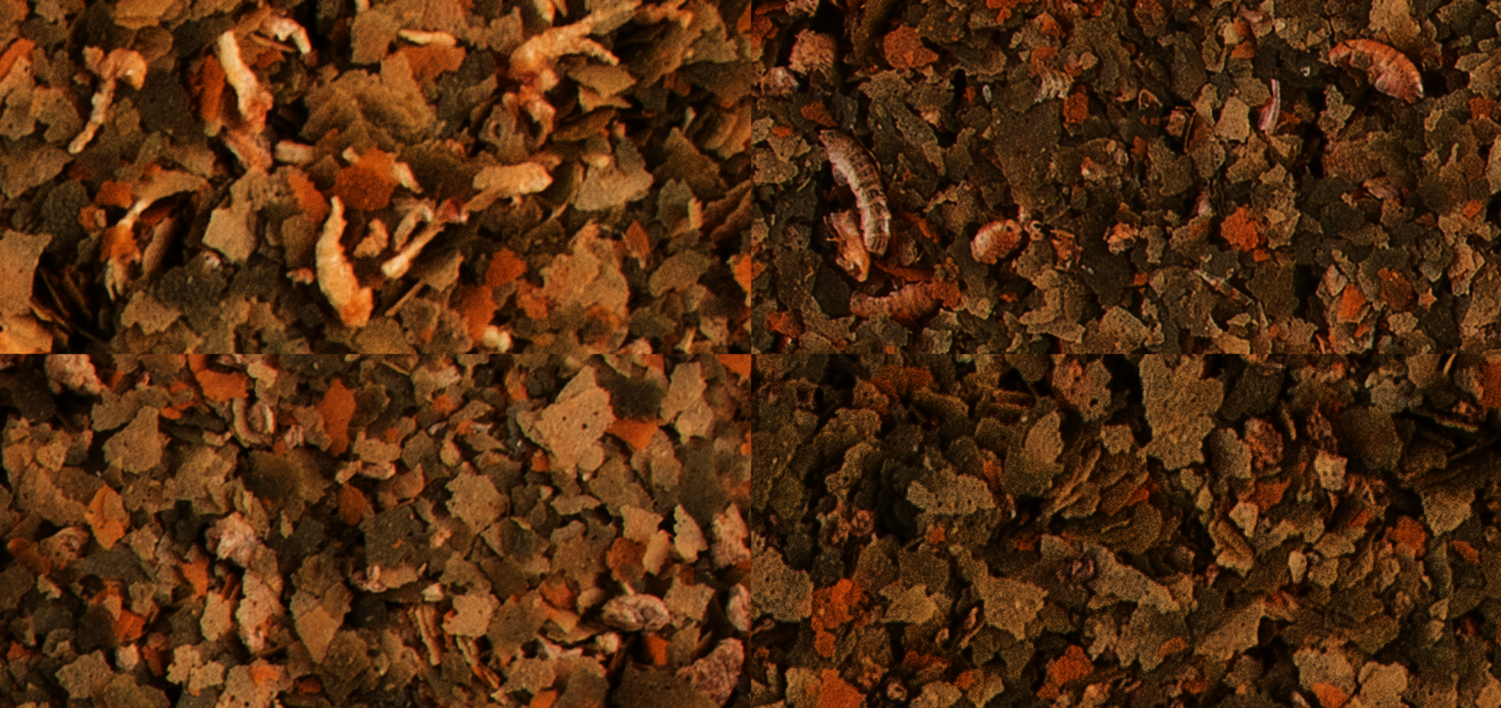 Vitamine: Vitamina D3 2085 UI/kg. AQ_saeureregulatoren}: Acid citric 331 mg/kg. Conţinut distribuit propoţional în compartimente individuale: Dafnii 10%, Lătăuși 10%, Creveţi 8%, Krill 8%.