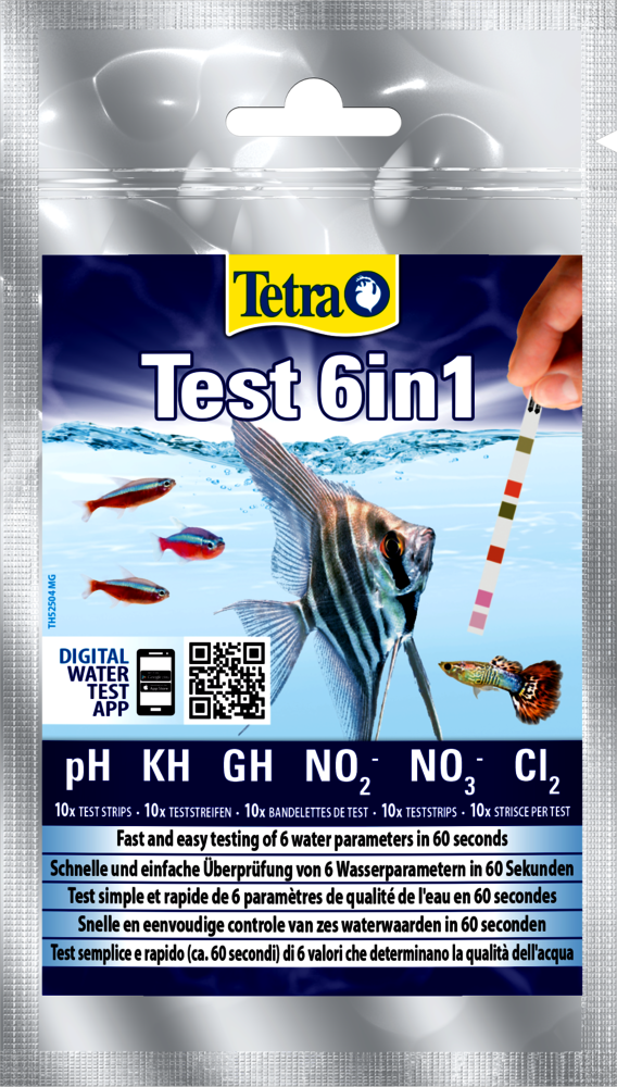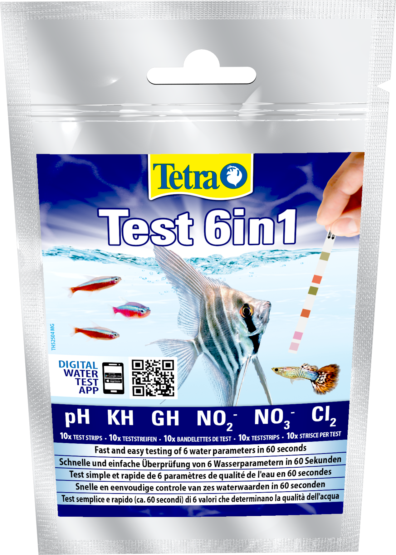 Tetra test şeritleri, akvaryumlardaki en önemli altı su değerini tek bir adımda hızlı ve güvenilir bir şekilde belirlemenizi sağlar: test şeritlerini suya daldırın, suda bir veya iki saniye çevirin, fazla suyu sallayın ve sadece 60 saniye sonra su değerleri hakkındaki en önemli bilgileri okuyun. Renk tablosu, değerlerin güvenli aralıkta olup olmadıklarını belirlemek için kullanılabilir. Akvaryum suyundaki pH, genel ve karbonat sertliği (GH + KH), nitrit (NO2-), nitrat (NO3-) ve klor (Cl2) ölçülür. Balık gibi akvaryum sakinleri, pH değerindeki aşırı değişikliklere çok hızlı tepki verirler, bu da onların sağlıklarını etkiler. Genel sertlik balığın hayati fonksiyonlarını etkiler, karbonat sertliği pH değerinin (pH tamponu) stabilitesini doğrudan etkiler. Test şeritleri ayrıca akvaryum suyunun nitrit ve nitrat değerlerini de ölçer. Nitrit, çok düşük konsantrasyonlarda bile son derece zararlıdır ve su içerisinde bulunmamalıdır. Nitrat bitkilerin büyümesine yardımcı olan bir besindir. Ancak, aşırı yüksek NO3- seviyeleri balıklara zarar verebilir ve aşırı yosun gelişimini teşvik edebilir. Klor da suda bulunabilir ve balıklar ve bitkiler için zararlıdır. Nitrit gibi, akvaryum suyunda klor da bulunmamalıdır. Tetra Aquatics uygulaması, bir akıllı telefon kullanarak su değerlerini hızlı ve güvenilir bir şekilde okumak için de kullanılabilir.