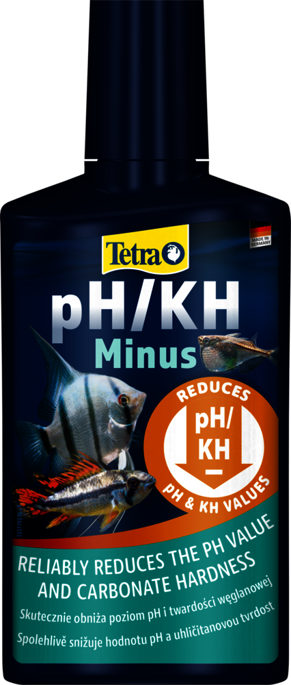 Tetra pH/KH Minus - це надійне рішення для безпечного зниження карбонатної жорсткості (KH) у вашому акваріумі. Знижуючи KH, значення pH також автоматично знижується, створюючи оптимальні параметри води для певних видів риб..